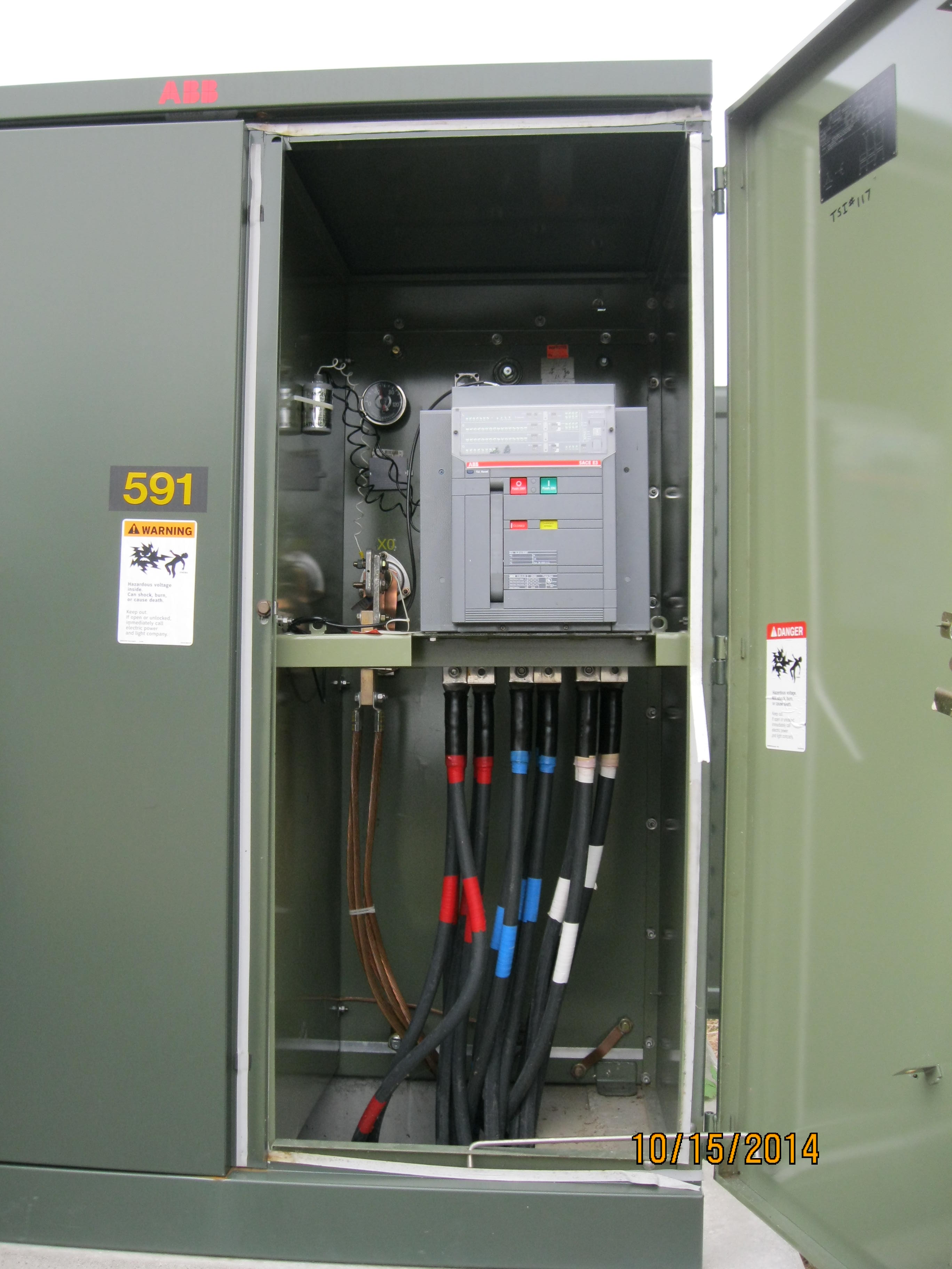 stevenal wrote: Field modification? Looks like the semi-circular hole adjoining the square one was an afterthought that left a sharp edge. That semi-circular hole was created by the fault, so yes, I guess you could consider it a field modification. Ha!. Seriously though, although this is a pad mounted transformer it is installed in an existing below grade vault. It would be very costly to bust up the slab to get conduits in from below grade so we fed it from/to overhead. The primary is in cable tray over and down through a conduit. The secondary is in wireway. This pic gives you an idea. Attachment:
