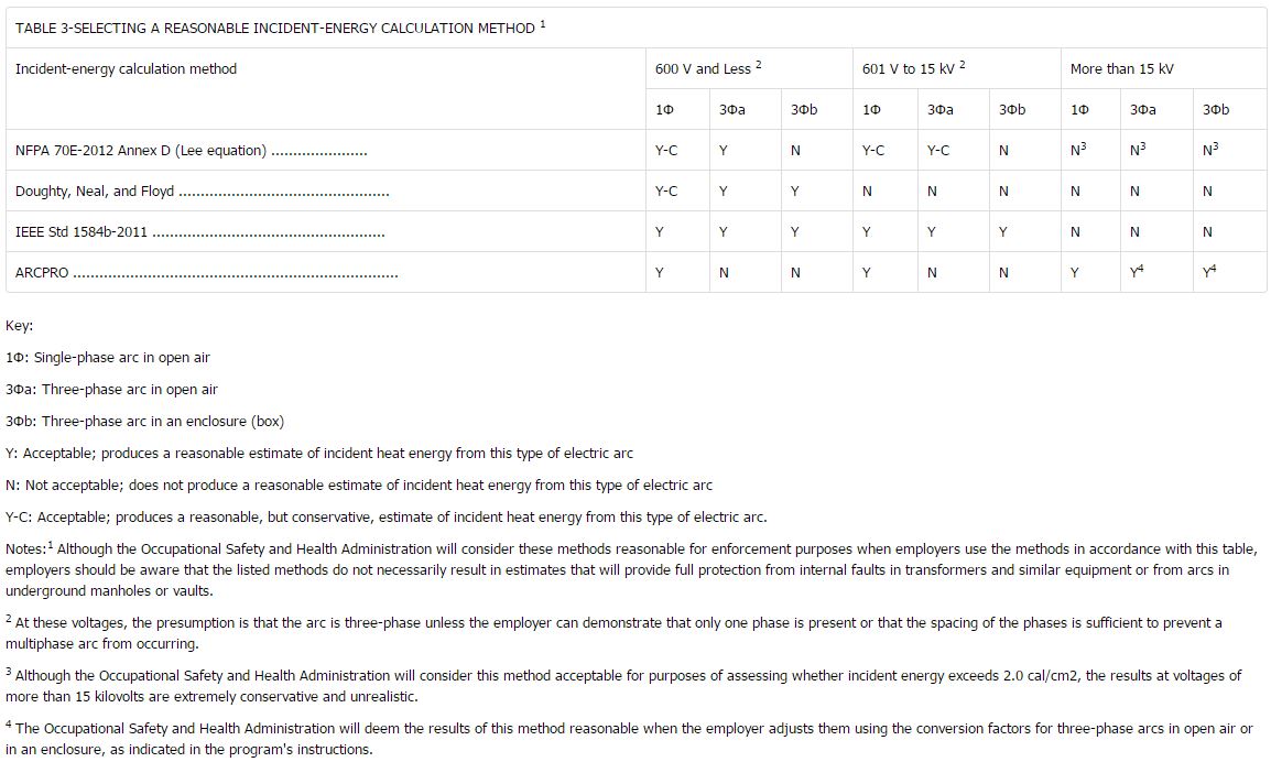 Good luck, Probably reverts to Lee at 15 kV if it even goes that high. As OSHA noted, Lee gives extremely conservative results at higher voltage. ArcPro is the only reasonable show around for 15 kV and higher. It all sounds good except for the fact that there isn't any test data above that voltage. So OSHA's "analysis" is that Lee gave very high results, and Duke heat flux gave very low results, and ArcPro was right down the middle.