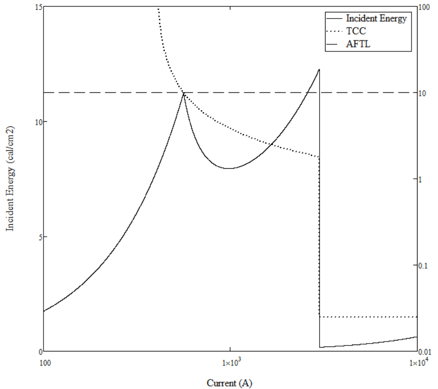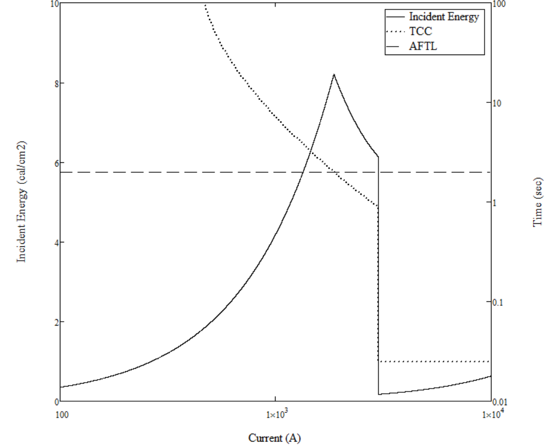 Without getting to far into copyright violations I'll show you a quick excerpt. The first chart attached shows the idea of what the conference article explains in more detail. The dotted line is the conventional "TCC curve" (time-current curve). It's an extremely inverse curve with an "instantaneous" trip setting. But superimposed on that it shows the incident energy calculation for every current as the solid line and the "2 second cutoff" as a dashed line.