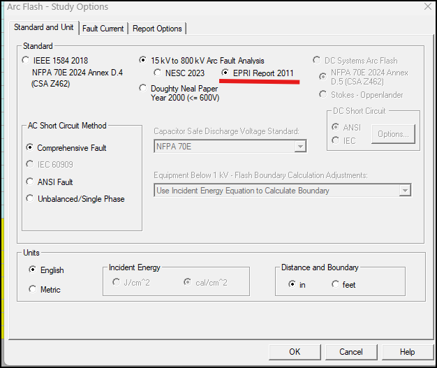 We have an available fault current at the service entrance of roughly 135 kA (nice) and it's causing the following Note (*N) on the main switchboard: (*N_ka) - Out of IEEE 1584 kA Range. Lee Equation Used. Consider NESC/EPRI method to compareThere IS an option for "EPRI Report 2011" under the Arc Flash Study Options (see below), but I am hesitant to use this method as I don't know what the results mean, and something seems REALLY off. Attachment: