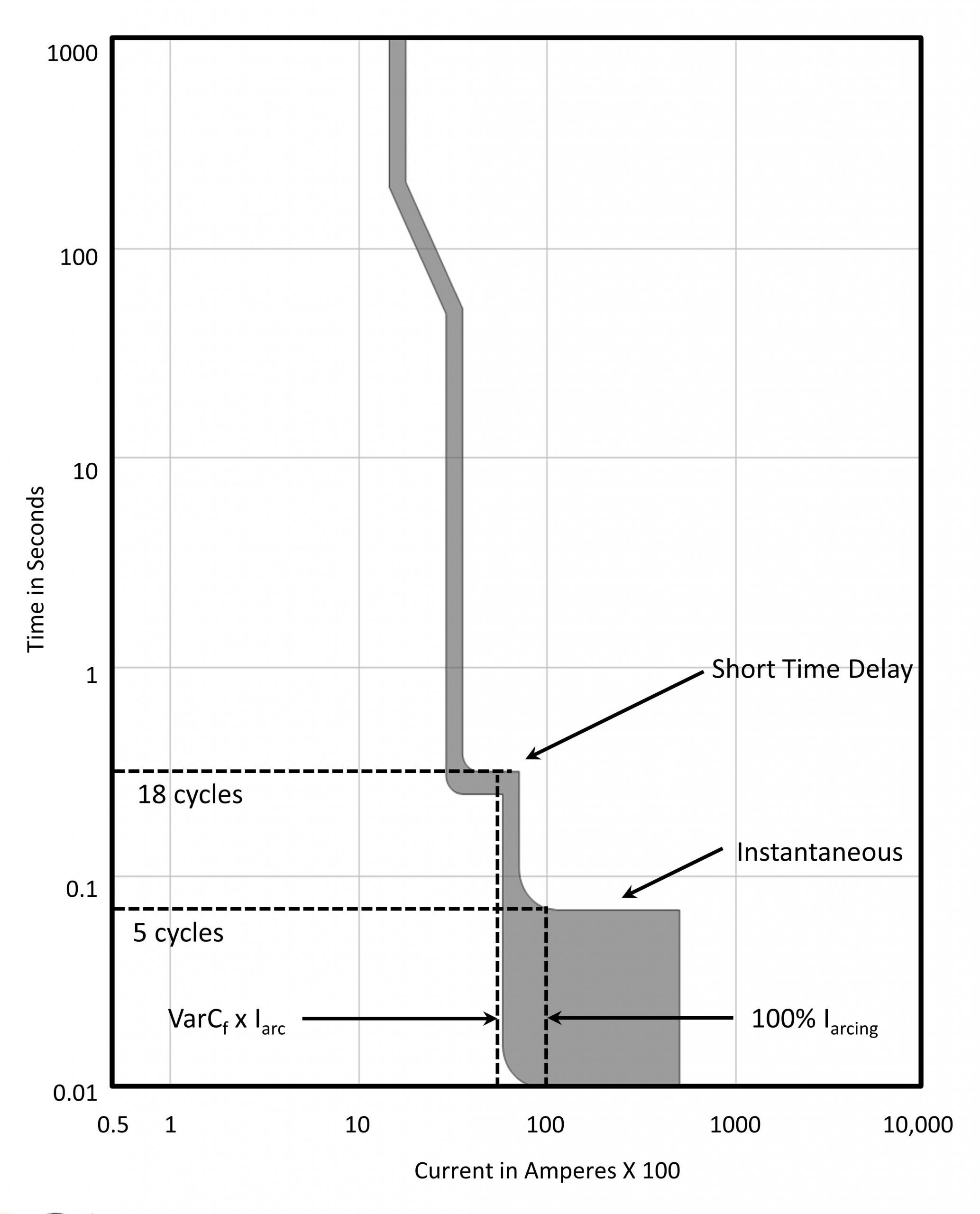 Based on almost 2,000 new arc flash tests, the 2018 edition of IEEE 1584 has made further improvements to the arcing current calculations for greater accuracy. However, the new equations are more complex and include different electrode configurations, 10 different coefficients as well as other variables. The process involves several calculation steps including determining the “Intermediate Average Arcing Current” with equations based on 600V, 2,700V and 14,300V. The second step is to use the intermediate current(s) and solve for the final arcing current at the specific system voltage. Similar to the 2002 edition, a second arc duration is calculated using a reduced arcing current to determine if there is an effect on the protective device operating time. Unlike the fixed value of 85 percent used in the 2002 edition, the 2018 edition has introduced a new equation for an Arcing Current Variation Correction Factor VarCf which is used for all voltages from 208V to 15,000V. The VarCf is heavily voltage dependent and has the greatest impact at voltages between 208V to 600V. The time-current curve in Figure 1 illustrates how a slightly lower arcing current causes the protective device to go from a 5 cycle clearing time to 18 cycles – Over three times as long!