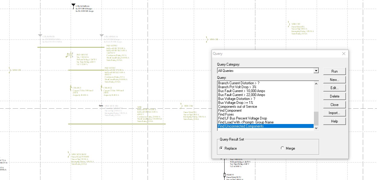 You can right click anywhere in the one-line then do a Query on unconnected components and Run. It selects all the unconnected components that way. Right click again and destroy. That will destroy them all in a oneline. If your model has multiple onelines then you repeat for all oneline drawings.
